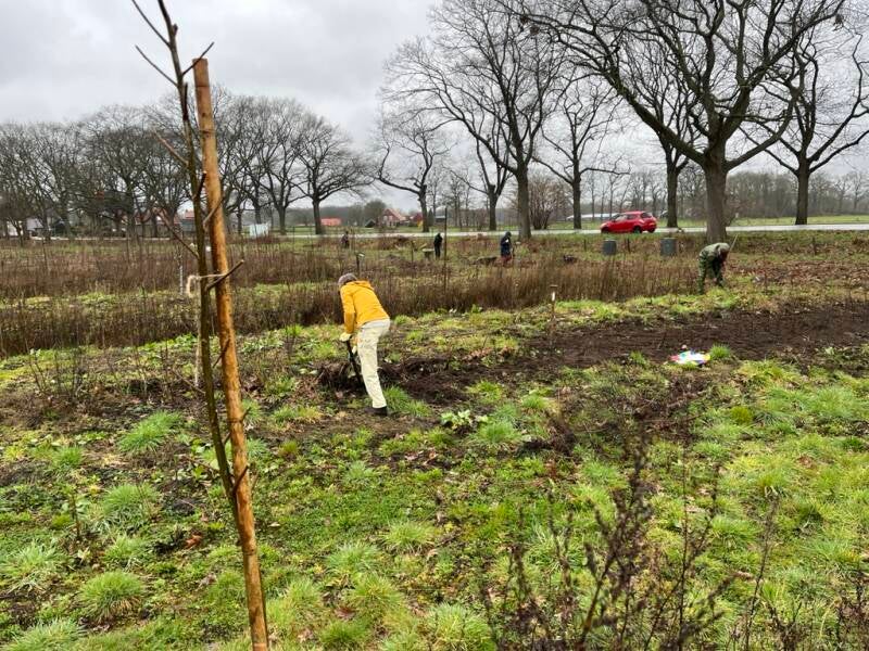 25 jan. '25: 5 heren van s.v. Bredevoort hebben samen met ons een groot aantal struikjes gepland!